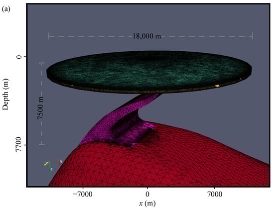 y-directions were set to 5000 m. The reservoir has a bullet shape, and its maximum height is 5300 m. It should be noted that we did not consider a heat source in these models. There were 41 observation lines were designed on the surface, and each line has 41 stations. Both station and line spacing are 400 m. Due to their complicated shape, these models are designed by 3ds Max, which is a professional software used for building 3D models. A designed model in 3D Studio Max is exported as an obj-format file and then is transformed into piecewise-linear-complex files that can be provided to TetGen to generate unstructured tetrahedral meshes [