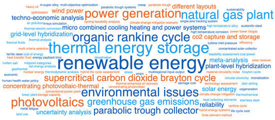 For this reason, life cycle-based analysis seems notably relevant to evaluating CSP technologies’ environmental performances. The available literature on LCA of CSP generation is focused on the knowledge and comparative analysis of its different technical and environmental aspects, especially concerning the possibilities related to TSS, Brayton/organic Rankine cycle, and hybridization aspects. Likewise, LCA is usually employed to compare different energy sources with CSP technologies, addressing dispatchability, GHG emissions, and energy costs. Note that GHG emissions are the central theme in the field of environmental assessment. On the other side, water requirements have not received much scientific attention. Figure 3 displays a generalized view of the themes addressed by this line of research.