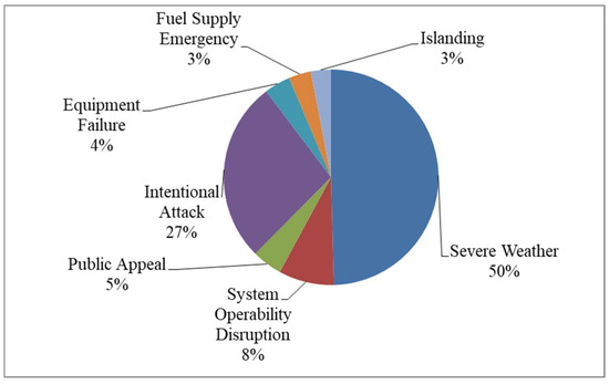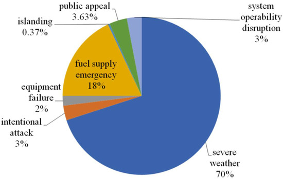 Occurrence of different events in percentage which caused the power outage [35].