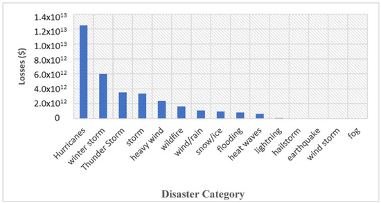 Natural disasters driven by severe weather conditions cause extended power outages, which not only affects millions of people but also costs billions of dollars. In 2021 only, winter storms cost around 200 billion dollars for the U.S. economy [21]. A winter storm hit Texas in February 2021 and caused an estimated financial loss of 45–50 billion USD, including infrastructure damage, medical expenses, loss of jobs, and business losses [22]. In the year 2020, a total of 22 disasters hit the U.S. and caused an average financial dent of 1 billion USD [15]. As the top catastrophic event, a Category Four Hurricane (Laura) hit Louisiana on 27–28 August 2020, causing an economic loss of more than 18 billion USD. The Derecho storm was the second most disastrous event hitting South Dakota to Ohio on 10th August, costing the economy 11 billion USD. Hurricane Sally, being the third in the list, hit the Alabama coast and cost 7 billion USD. The U.S. witnessed 16 disasters in the year 2017 alone causing an economic loss worth billions of dollars [23]. In 2012, Hurricane Sandy hit the U.S., where it was one of the most catastrophic events of the U.S. history affecting 8 million people and costing 70 billion USD [24]. Hurricane Irene affected 6 million people and cost the economy 10 billion USD in 2011 [24]. The U.S. bore an economic loss of up to 50 billion USD due to marine disasters during 2003–2012 [25]. Over the period of 38 years from 1980 to 2017, the U.S. observed economic losses of around 219 billion USD specifically due to natural disasters [26].