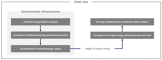 With the recent explosive population increase and energy consumption in cities, the use of large-scale waste resources has emerged as available energy is scarce [21]. Environmental infrastructure can produce energy by utilizing urban waste resources. The amount of energy that can be regenerated in these facilities is determined by the amount of sewage and waste emitted per capita. The sewage treatment and incineration plants, which are the subjects of this study, have different treatment processes, having significantly different characteristics such as the type or size of land use, energy use, and production. The amount of sewage and waste generated in Seoul is 4,180,275 m3/day, and 47,996 tons/day respectively, and the sewage treatment and incineration plants treat the entire waste [15].