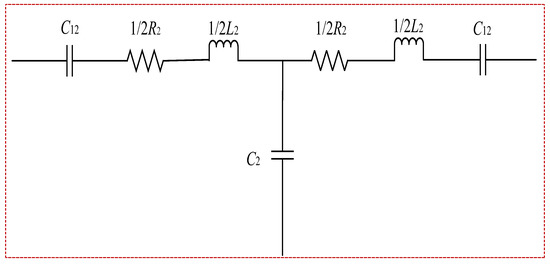 The neutral zone adopts the type-T equivalent circuit model, as shown in Figure 4. The catenary model formula and parameters are used to calculate the neutral-zone equivalent resistance, inductance, and capacitance to ground and the coupling capacitance between the neutral zone wire and catenary on both sides of the overlap [7].