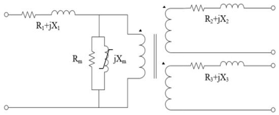 Equivalent inductance of the traction transformer can be expressed as Equation (9) [21,22,23]: