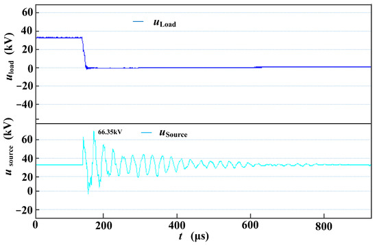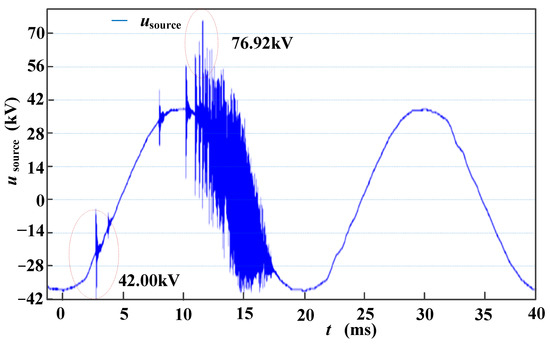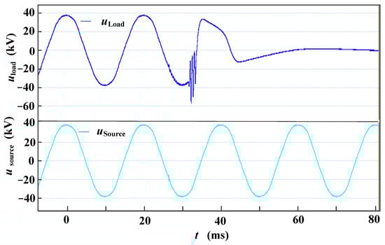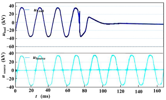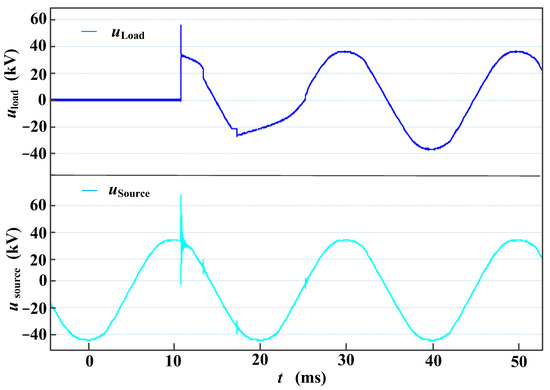 After raising the pantograph and contacting the bow net, a power frequency voltage appears on the power supply side of the circuit breaker (see Figure 16 Usource). After closing, the load side of the circuit breaker maintains the power frequency voltage, and the voltage waveform is shown as Uload in Figure 16.
