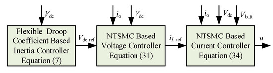 The cascade control flowchart associated with the flexible V-P droop coefficient-based inertia control and NTSMC for tracking voltage and current references is shown in Figure 4.