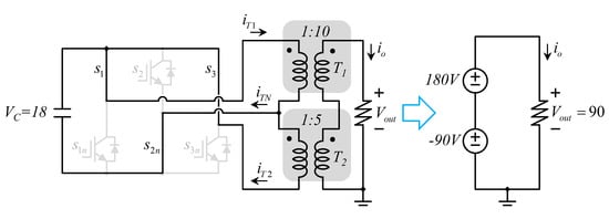 The output voltage can be expressed as the summation of the voltage at both transformers’ secondary windings, as in (28):