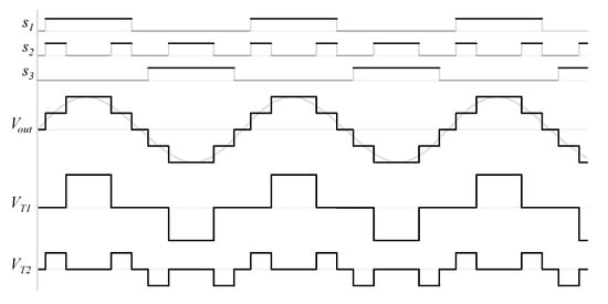 Evidently, the designer can choose some parameters, such as the turn ratio of transformers, and the input voltage may be different, but the converter can provide five different output voltage levels, which can produce a five-level stepped waveform.