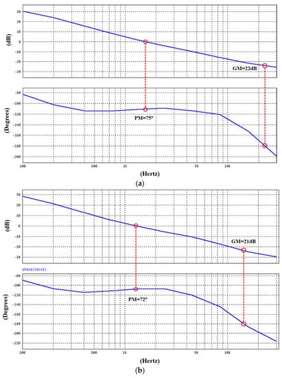 Bode plots of the power electronics system under closed-loop regulation. (a) Closed-loop bode without the output transformer, and (b) closed-loop bode with the output transformer.