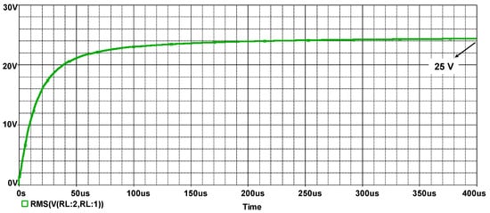 The simulation time was 400 µs, which ensures the stability of the circuit operation. The simulation results are shown in Figure 9, Figure 10, Figure 11, Figure 12, Figure 13 and Figure 14.
