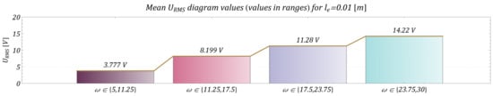 Figure 19. RMS voltage output related to selected bounds of angular velocity for selected value.