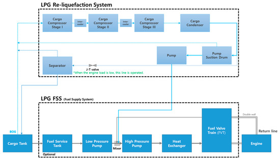 Seo, Y.; Kim, J.; Park, E.; Lee, J.; Cho, M.; Han, S. Analysis of Energy Consumption of Novel Re-Liquefaction System Integrated with Fuel Supply System (FSS) for LPG-Fuelled LPG Carrier to Conventional Systems. Energies 2022, 15, 9384. https://doi.org/10.3390/en15249384