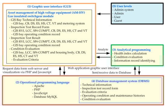 - DBMS: The information includes engineering equipment tag design, technical information, evaluation criteria, inspection test results, and operating condition and maintenance histories. The DBMS is connected to the web allocation GUI by using Apache, PHP and JavaScript to record the data into MySQL server.