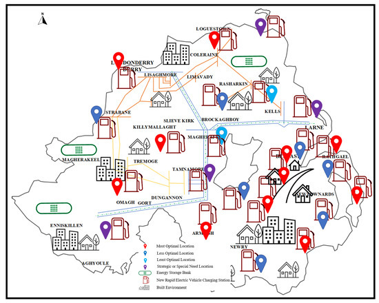More of a good thing is deployed and that is bad. The good is often the nemesis of the best. Public electric vehicle charging has often let people down [1]. For a more sustainable transport system, Electric Vehicles (EVs)—all vehicles powered either partially or fully by on-board batteries that are rechargeable with electricity—have been identified as possible replacements for internal combustion engine vehicles that rely on polluting fossil fuels [2]. The transport sector alone contributed 20% to the total emissions in Northern Ireland (NI) in 2019 [3]—just before COVID-19. As individuals and economies seek alternative means of transportation for benefits [4,5], the shift towards EVs is projected to reach new record-breaking levels within the next few decades [2]. Towards achieving net zero [6], a ban is in place on the sale of new fossil fuel vehicles in the UK, including NI [7], from 2030 and new vehicles are expected to be electrically propelled by 2035 [8]. Additionally, an EU directive on alternative fuel infrastructure recommends a reduction in the dependence on fossil fuel using appropriate infrastructure and strategies towards smart, sustainable, and inclusive growth [9]—applies also to NI and the Republic of Ireland (ROI). The use of EVs means that points of recharging an EV battery must be provided at suitable locations for an effective lower emission transport system. Some EV charging points are installed within built environments at homes and around offices, others are installed within open premises for public use. For the charging points deployed for general/public use, there have been incidences where the locations of the charging stations are remote, some charging stations are simply public burden—installed and have stopped working while occupying public spaces, some charging stations are difficult to access for charging services, and some others are partially functional due to faults or poor maintenance especially the ones that provide free services [1,10,11]. Deploying EV charging stations in inaccessible locations (or deploying inaccessible equipment) cannot be said to be economically and socially beneficial. A mostly malfunctional or inaccessible stock of EV charging stations could adversely impact the effort towards switching to a lower emission transport system with EVs. Additionally, what people want when travelling over long distances with respect to using EV charging stations ought to be considered. As reviewed in the subsequent section, different factors have been considered in siting EV charging stations for different purposes and multi-criteria approaches have been described in optimally localising EV charging stations.