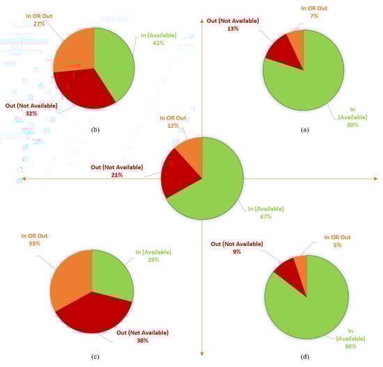Plotting the cumulative number of charging station with respect to service statuses (the OCSA quadrants for overall availability of EV charging stations stock) suggests that there is a possibility of deploying additional EV charging stations for better user experience (when the additional EV charging stations are mostly functional) or for worse user experience—when the additional EV charging stations are malfunctional, hence lowering the overall availability of the stock of the EV charging stations within and across a border region, Figure 16.