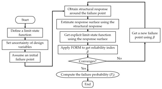 The analysis will be stopped at the th iteration if the Equation (6) can be established, then it is possible to evaluate structural reliability.