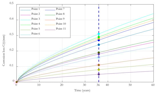 Time-dependent corrosion loss.