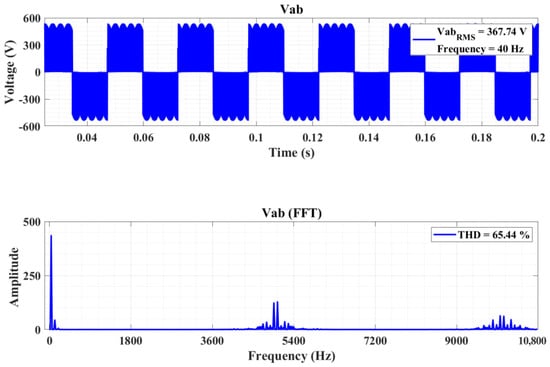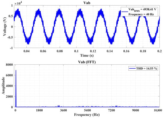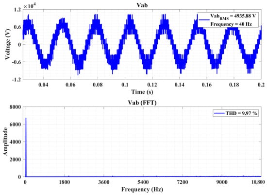 The operation of the CMC converter is verified in simulation using Simulink/MATLAB with the parameters in Table 2. Figure 4 shows the line voltage waveforms and the harmonic spectrum related to it. Note that the CMC can generate only three levels of line voltage, thus causing the total harmonic distortion (THD) to be high compared to multilevel converters.
