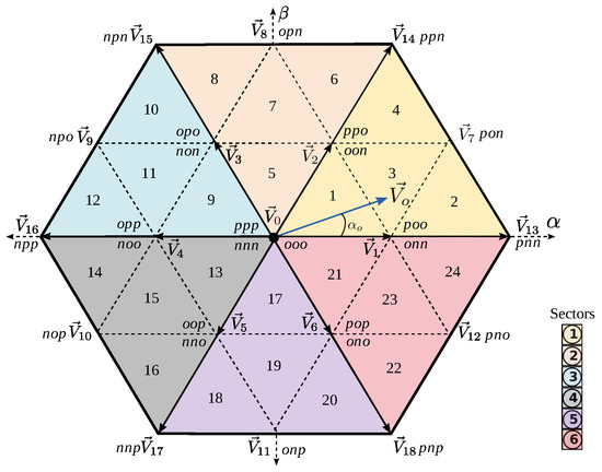- Zero Vector , represents three switching states ppp, nnn, and ooo, the magnitude of is zero.