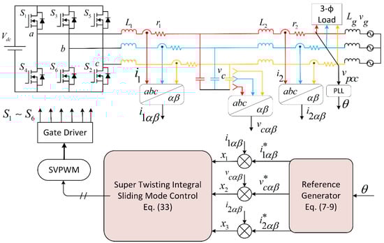 The rest of the manuscript is organized as follows: In Section 2, the mathematical model of a three-phase GC-VSI system is presented. Section 3 proposes a novel design of ST-ISMC control in the stationary αβ reference frame. MATLAB and Simulink-based simulation results are illustrated in Section 4. Section 5 presents the real-world hardware prototype implementation of the system. Finally, the article is concluded in Section 6.