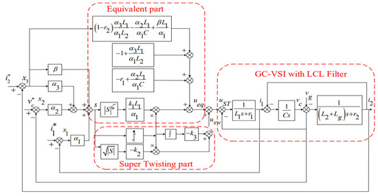 Finally, the control law derived in (33) for GC-VSI with an LCL filter is presented in structural diagram in Figure 3, and the controller parameter values are listed in Table 2. The parameter values are chosen by a trial-and-error-based approach.