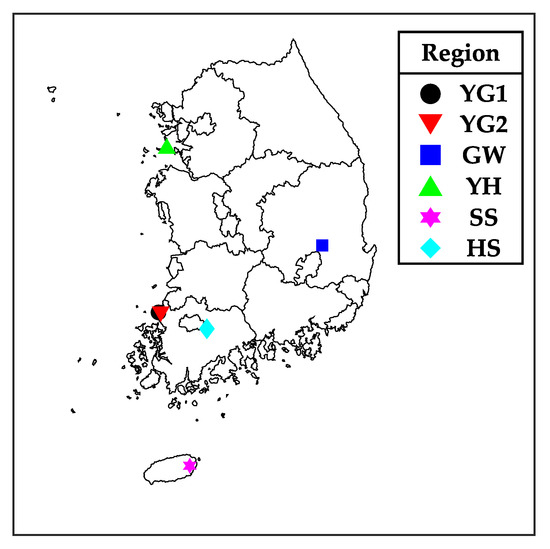 Figure 2 shows the locations where six WPDs were measured on a map of the Republic of Korea. It is shown that the six regions are evenly distributed in the map. Additionally, the WPD measured on Jeju Island is included. By using WPDs from different regions, various WPPMs will be applied and compared.