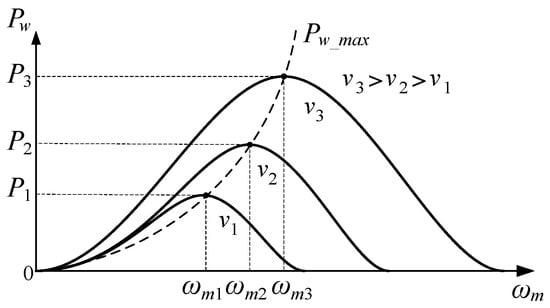 Figure 1 shows the wind turbine power-rotor speed characteristic curves at different wind speeds, the maximum power points (MPPs) under different wind speeds forms the optimal power curve. PMSGs usually operates under maximum power point tracking (MPPT) control, where there is a optimal value λopt at which the PMSGs can extracts the maximum power Pw_opt from wind given by: