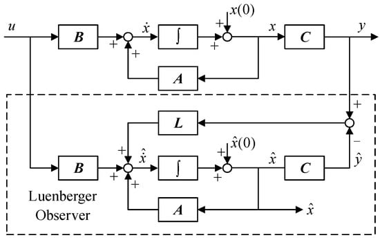 where superscript ‘^’ indicates the estimated value. is the observation matrix. Figure 3 shows the structure diagram of the Luenberger observer.