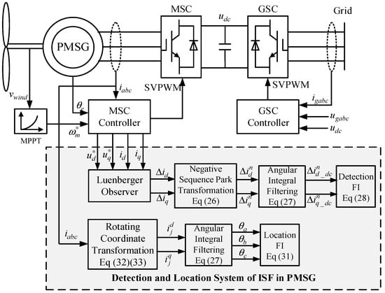The paper consists of five essential parts. In Section 2, a simplified ISF model of PMSG on dq-axis is established to analyze the fault components on dq-axis. In Section 3, the Luenberger observer based on expanded mathematical model on dq-axis is designed to accurately measure current residuals under fault conditions. Section 4 defines the fault detection and fault phase location indexes, which consider speed and load fluctuation during operation of PMSG. Finally, simulation results in Matlab/Simulink are given in Section 5.