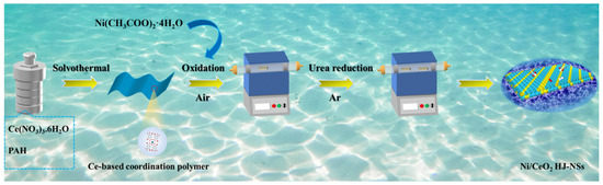 Schematic representation of the synthesis process of Ni/CeO2 HJ-NSs.