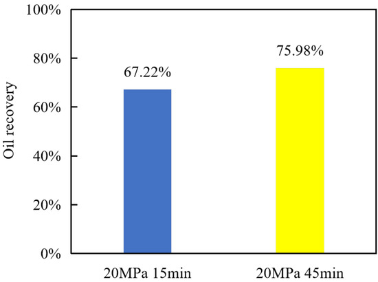 In this experiment, the soaking pressure was 20 MPa, which does not reach the miscible pressure. Thus, the influence of the miscible phase on the recovery degree of crude oil was not considered.