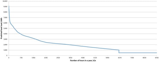 Based on the heat demand diagram for the analysed mine and the temperature frequency diagram, an ordered diagram of the hourly energy demand in kWh was developed, shown in Figure 8. The total annual demand for heat in the mine is 17,153 MWh/year (61,750 GJ/year).