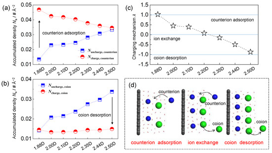 Based on previous experimental and theoretical studies, three distinctive charging mechanisms have been proposed, including counterion adsorption, ion exchange, and coion desorption. To quantify the charge storage mechanisms of graphene-based EDLCs, a charging mechanism parameter λ was thus calculated as [34]: