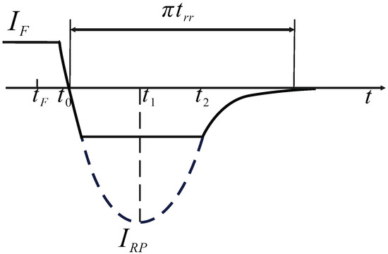 Due to the existence of junction capacitance, the rectifier tube must experience a transient process when it switches state among zero bias, forward bias and reverse bias. It takes the rectifier tube a certain amount of time to restore the reverse blocking ability when the reverse voltage is suddenly applied to it. The dynamic reverse recovery characteristics of the rectifier tube are shown in Figure 2, where is the forward conduction current, and is the reverse recovery time of the rectifier tube.