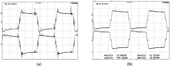 Voltage waveforms of the drive signal. (a) Without saturable inductors; (b) With saturable inductors.