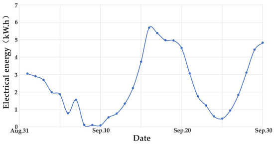 The distribution of electrical energy measured by the tidal energy generation system in September 2016 is shown in Figure 6.