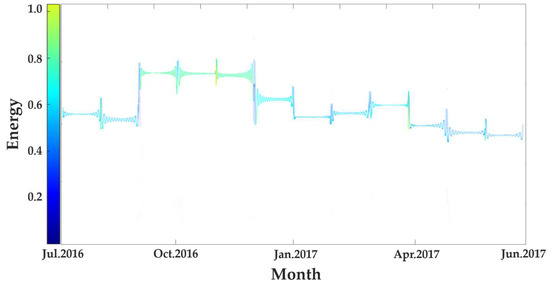 The Hilbert spectrum of the monthly generation waveform of tidal energy is shown in Figure 9.