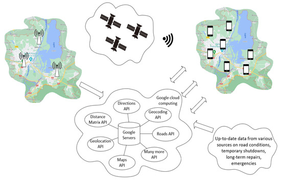 Significant ITS development has accelerated the pace and direction of data acquisition. Nowadays, data come from many different, unprecedented sources. Whether stationary, portable, or online, the acquired data may be used to detect traffic dependencies (monitoring, incident detection, verification, and classification) faster. Most of these data are generated directly in digital format, which makes their use more convenient. The most popular method of road situation analysis regarding the above issues is based on algorithms created by Google for their Maps functionality. Google Maps generates data during the transmission of GNSS signals between satellites and individual users’ devices (e.g., cell phones or vehicles). The technology used to collect large amounts of data from consumer devices has been called crowdsourcing. Google Maps also has access to local municipality data, such as information about roads, road types, road works, and speed limits. Google uses these data to design algorithms that continuously calibrate and tune predicted travel times.
