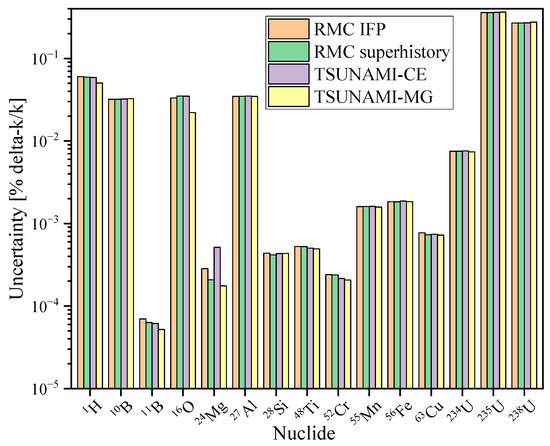 A detailed comparative analysis of the advantages and disadvantages of different sensitivity and uncertainty analysis methods was also conducted. The total uncertainty in the keff of the first-order uncertainty quantification method was compared with that of the stochastic sampling method, and the maximum relative deviation of total uncertainties in keff is 8.53%. Moreover, compared with the IFP method, the superhistory method can reduce the memory footprint by more than 95%, but the computation time was only about twice as much as the IFP method. The superhistory method shows advantages for the cases which have many nuclides and reaction types to be analyzed.