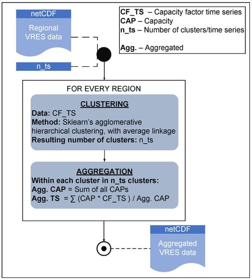 - Next, the CF time series of variable renewable energy source (VRES) (i.e., wind turbine and photovoltaic) are aggregated within each newly-defined region.