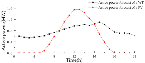 | Forecast active power of WT/PV at time t at node n/p | ||