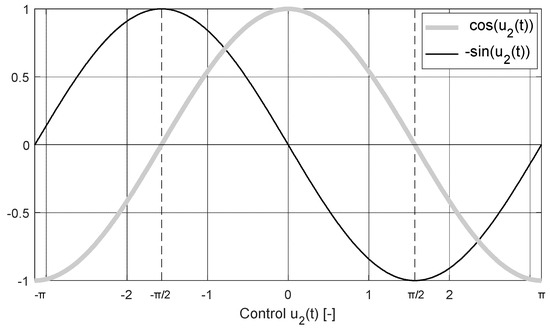 so that maximises the Hamiltonian over the set for almost all ( and are and derivatives with respect to ; and are continuously differentiable with respect to state and continuous with respect to time and control) [56]. For the analysed system, the co-state vector was: