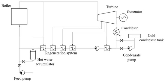 Heat flow chart of TPP with feed water accumulator.