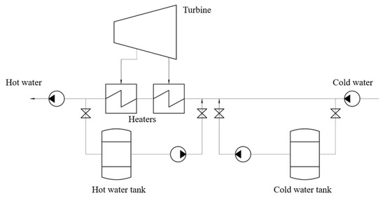 Besides the feed water accumulation, a thermal power plant (TPP) may use the heated water accumulation that is storage and release of the district heat supply water (Figure 12).