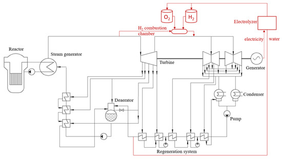 - Aminov, R.; Bairamov, A.; Garievskii, M. Assessment of the Performance of a Nuclear–Hydrogen Power Generation System. Therm. Eng. 2019, 66, 196–209. [Google Scholar] [CrossRef]