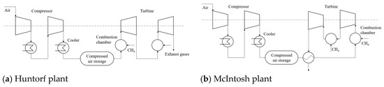 Compressed air energy storage systems: (a) Huntorf plant, Germany; (b) McIntosh plant, Alabama, USA.