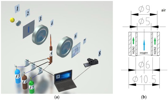 - Karaminejad, S.; Askari, M.H.; Ashjaee, M. Temperature Field Investigation of Hydrogen/Air and Syngas/Air Axisymmetric Laminar Flames Using Mach–Zehnder Interferometry. Appl. Opt. 2018, 57, 5057–5067. [Google Scholar] [CrossRef] [PubMed]