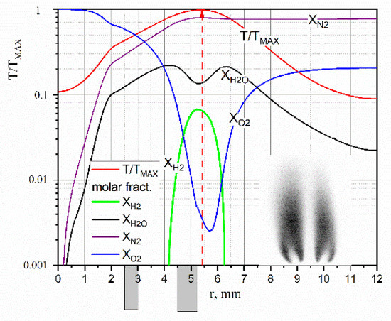 - Kochergin, D.O.; Abdrakhmanov, R.H.; Lukashov, V.V.; Terekhov, V.V. On the Structure of Direct and Inverse Diffusion of the Hydrogen-Air Flame. Sci. Bull. Novosib. State Tech. Univ. 2016, 62, 195–204. [Google Scholar] [CrossRef][Green Version]