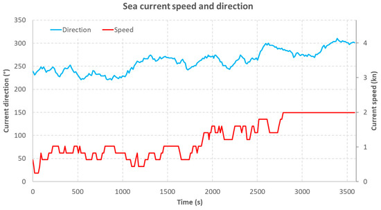 Sea current speed and direction during the simulation.