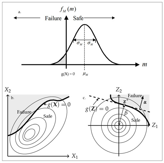 Including uncertainties of the random variables, the probability of failure () can be determined from the limit-state function (g(X)), which is a boundary between desired (g(X) > 0) and undesired (g(X) ≤ 0) performance of any structure and can be defined within a mathematical model for functionality and performance [53].
