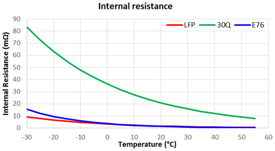 As mentioned above, three types of cells were adopted to analyze the energy storage of the delivery vehicle: LFP prismatic, NMC 18,650 cylindrical, and NMC pouch.